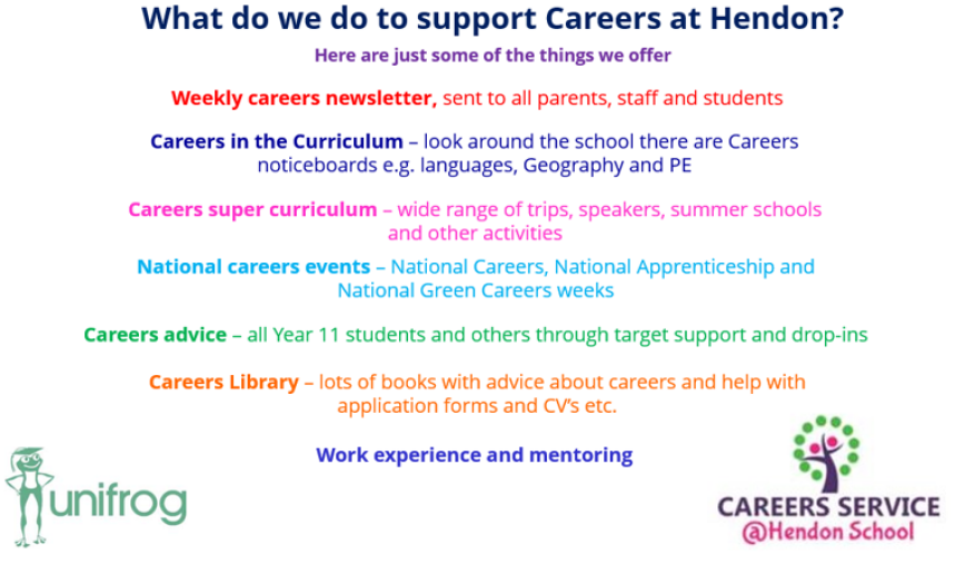 All students have access to a planned careers curriculum throughout their time at Hendon. The programme focuses on developing the skills and knowledge required for each individual student regardless of their aspirations.